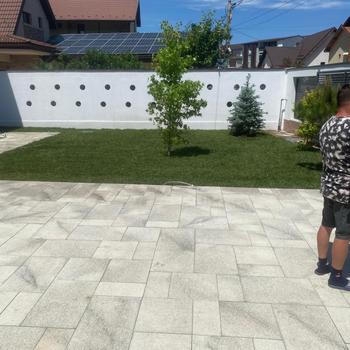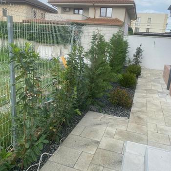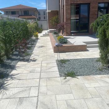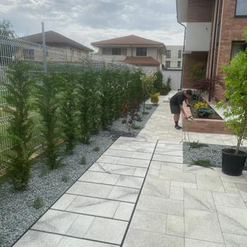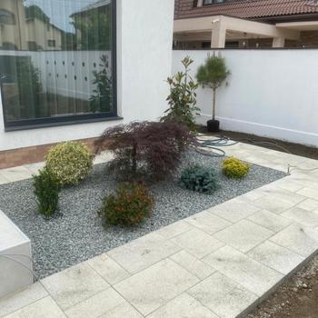 Bună zioa Sisiteme de irigați Sisteme de prindere alea fluviale dreanaj Aducere teren la cota cu pământ negru Montare gazon rulou sau după caz semințe de gazon Plantare Piatră decorativă Mă puteți contacta la nr