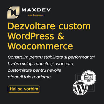 MaxDev Agency este o agenție digitala full-service, ce oferă servicii de web design și web development, bazate pe Wordpress. Abordarea noastră sofisticată în dezvoltarea experiențelor digitale depășește toate așteptările. Oferim servicii complete pentru afacerea ta, te ajutăm să fii prezent în mediul online, și să ai succes! Fie că ai nevoie de un website pentru afacerea ta, sau de un magazin online prin care îți poți crește vânzările, noi suntem soluția ideală pentru tine! Venim cu o experiență vastă, avem peste 120 website-uri create, 90% din clienții noștri ne recomandă și sunt foarte mulțumiți de serviciile noastre. Nu ezita să ne contactezi! Îți putem garanta calitatea serviciilor,seriozitate, profesionalism și promptitudine!