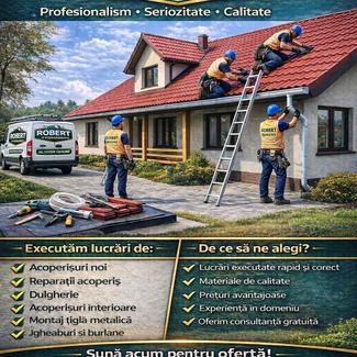 Oferim servicii profesionale de montaj operișuri pentru case și vile, folosind materiale durabile și de calitate superioară. Echipa noastră are experiență de peste 10 ani și garantează lucrări realizate impecabil, respectând toate standardele de siguranță și termenele stabilite. Montăm acoperișuri din tablă, țiglă ceramică, țiglă metalică sau panouri tip sandwich, adaptate la nevoile și bugetul fiecărui client. Fiecare proiect începe cu evaluarea structurii și recomandarea materialului optim, continuând cu montajul profesionist și finisaje estetice. Folosim izolații termice și hidroizolații pentru protecție împotriva intemperiilor și confort sporit în interior. Oferim consultanță gratuită și estimări exacte pentru ca investiția să fie sigură și eficientă. Ne ocupăm de fiecare detaliu: sisteme de jgheaburi, coame și accesorii, pentru un acoperiș complet funcțional și durabil. Garanția lucrărilor și suportul post-montaj vă oferă siguranță și liniște. Alegând serviciile noastre, investiți în durabilitate, estetică și protecția locuinței pe termen lung. Contactați-ne pentru consultanță gratuită și transformați acoperișul casei într-un element sigur și elegant.
