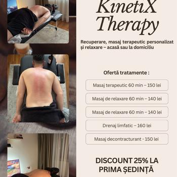Sunt Robert Matei, kinetoterapeut licențiat ( anul 2022 ) cu pregătire și diverse acreditări în masaj terapeutic și tehnici de recuperare . Ofer ședințe de masaj adaptate fiecărui pacient, pentru dureri de spate, cervicale, contracturi musculare, stres sau pur și simplu pentru un moment de relaxare . - Masaj terapeutic - Masaj de relaxare - Drenaj limfatic - Masaj cu ventuze - Masaj decintracturant Nu ofer masaj standard, fiecare ședință este adaptată individual, în funcție de evaluare . Pentru mai multe informații sau pachete promoționale nu ezitați să mă abordați . -Locație – Sector 3 ( Mihai Bravu ) & -La domiciliu – București / Ilfov