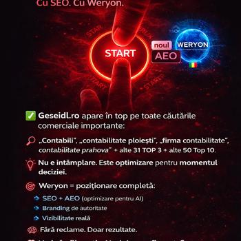 Weryon este o companie SEO, AEO, GEO, SMM, SEM și realizare website premium din 2007 și suntem mândri că nu avem nici o recenzie negativă. Suntem o echipă tânără de web developeri full stack, experți SEO, marketeri, copyright și antreprenori alături de o platformă dezvoltată cu resurse și dorința de a excela.